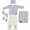 Newborn outwear knit set 6pcs (top- pants- blanket- booties- mitten- hat)