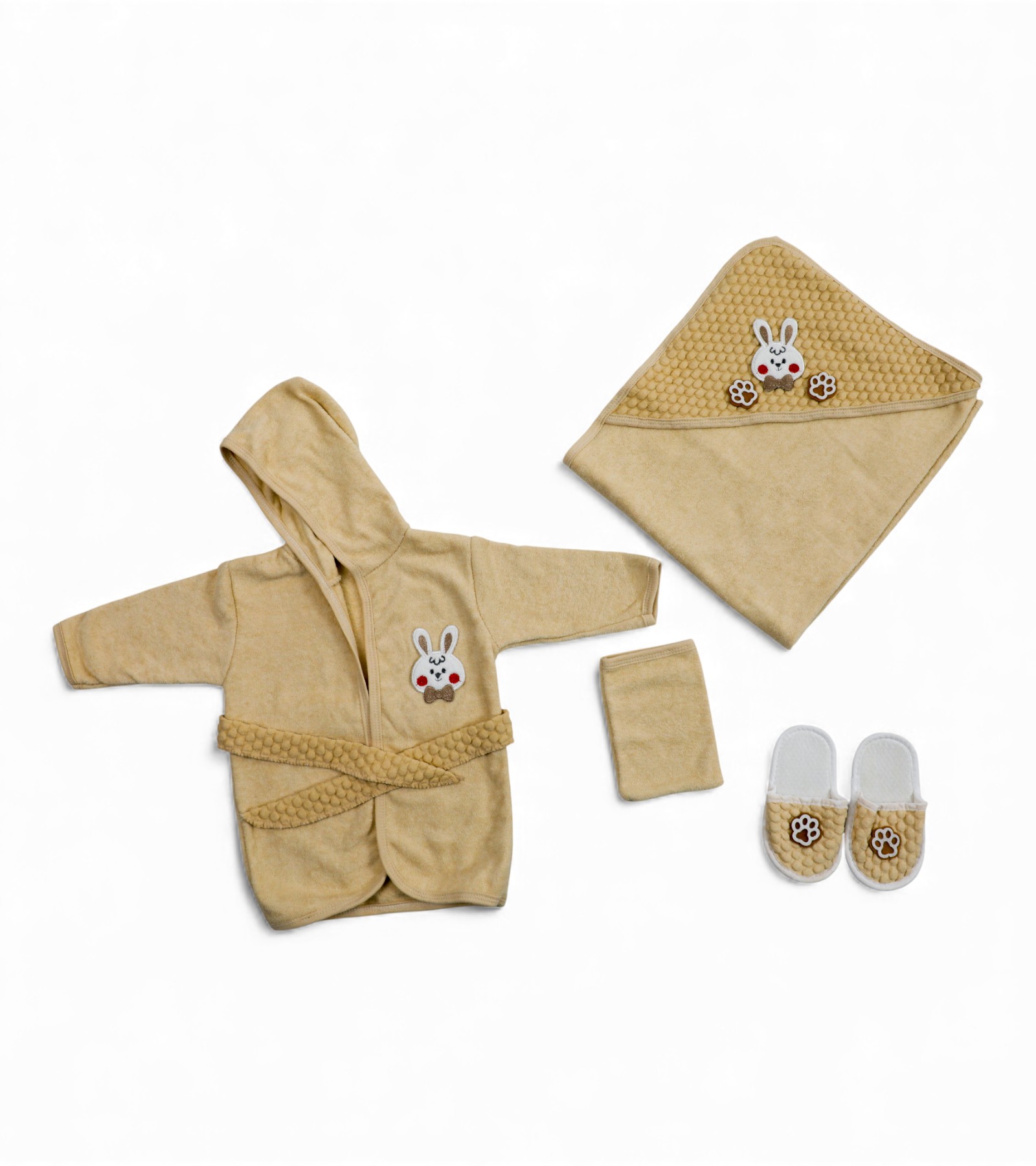 Organic newborn bathrobe set 4pcs-beige (bathrobe- towel- glove- slippers)